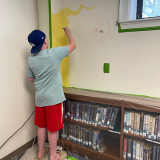 The Chatham Library invited us to paint a mural in their kids room! Grace held a workshop with the students so that they could come up with drawings and ideas of things they wanted to see on the wall. Then, on a Wednesday afternoon, everyone got together and painted this amazing mual that full transformed their space.