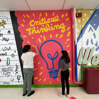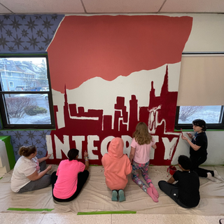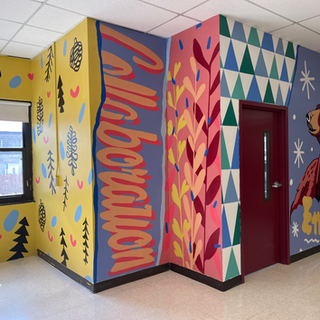 Our Rutland Middle School Cafeteria mural was one of our favorites so far this year!The mural was painted in 5 days with about 250 student participants. The mural was based on the 7 core values of a graduate that Rutland has for its students - communication, critical thinking, Wellness, adaptability, integrity, collaboration and empathy.