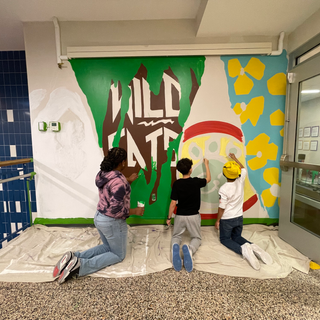 We returned for our 7th mural series at Woodlawn Elementary. This time, we created a mural interpreting student drawings for a space designated for older students in the school. In 5 days, we had 250 students participate in by painting 4 amazing murals!