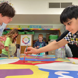 In June we had a marathon project in which we painted a 4x8 ft wooden panel with all of the 5th grade students at each of the five elementary schools in the Niskayuna School District. This meant that we went to Birchwood, Craig, Rosendale, Hillsdale, and Glencliff Elementary Schools. All of the 5 panels were brought together to create a final cohesive piece in the local middle school.