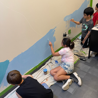We were invited to paint 2 murals in the social services offices to create a calming atmosphere. We chose to go with some ocean designs and painted the mural alongside some 4th graders!